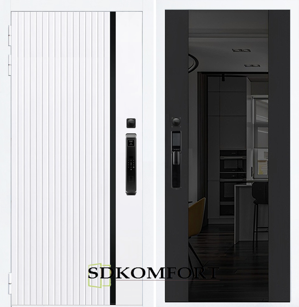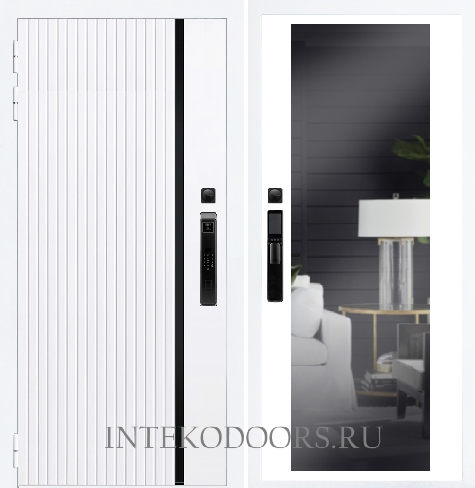 Агат Вертикаль Белая F55 с зеркалом – купить за 68 000 ₽ | Официальный дилер входных дверей "INTEKO" производства Йошкар-Олы в Москве.