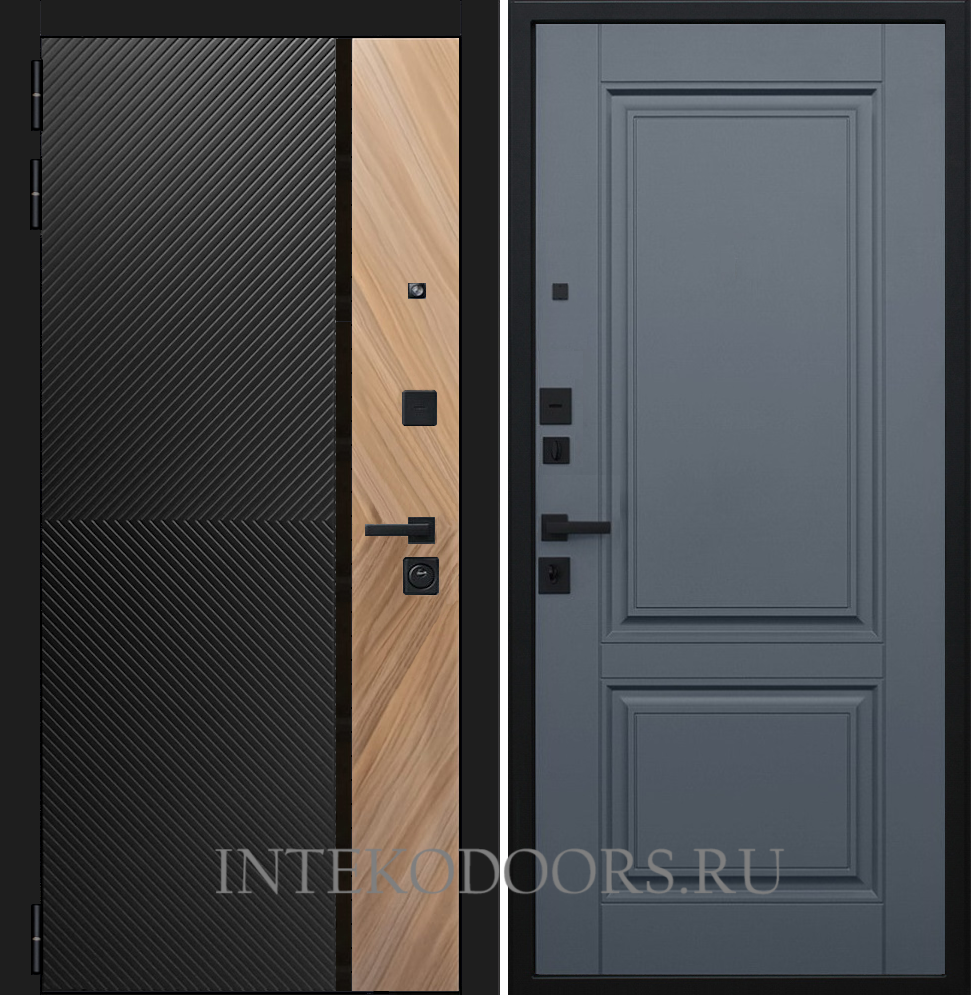 Внешняя сторона : Лист металла 1.8мм. + Декоративная панель МДФ 12мм. Цвет "Черный кварц"