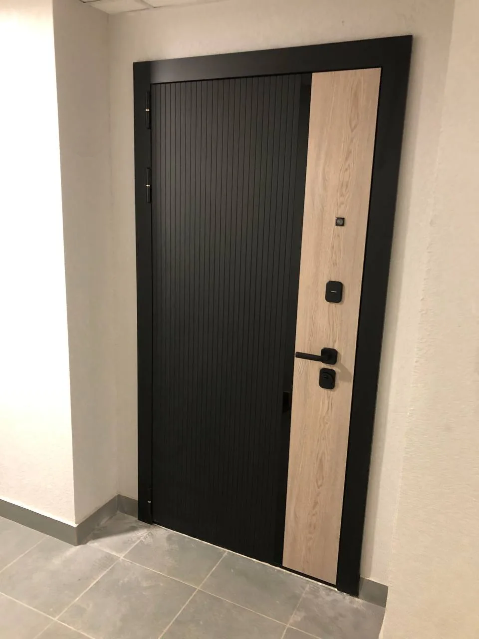 Внешняя сторона : Лист металла 1.8мм. + Декоративная панель МДФ 12мм. Цвет "Черный кварц"