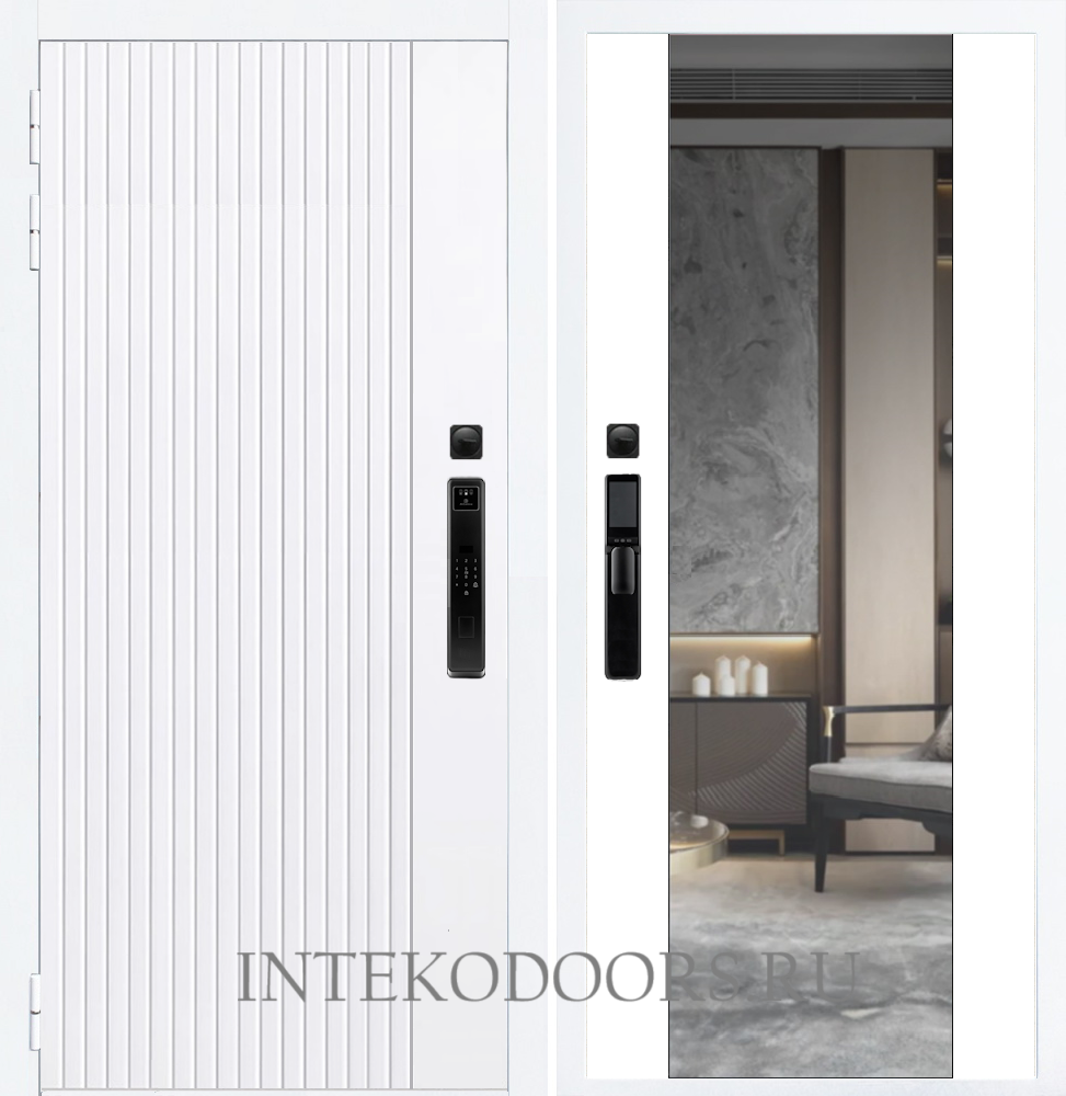 Внешняя сторона : Лист металла 1.8мм. + МДФ 12мм. Цвет "Белый Матовый"