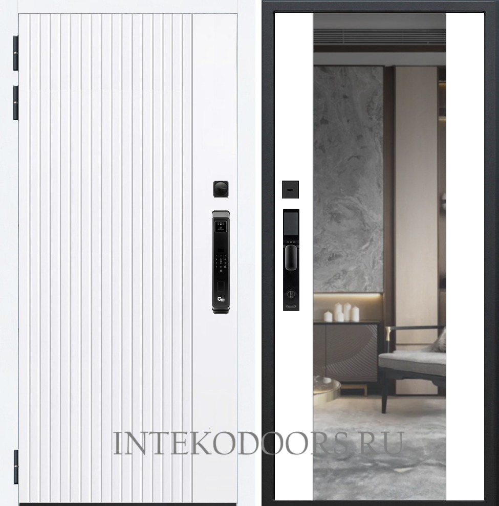 Вертикаль Белая зеркало ELIT – купить за 70 000 ₽ | Официальный дилер входных дверей "INTEKO" производства Йошкар-Олы в Москве.